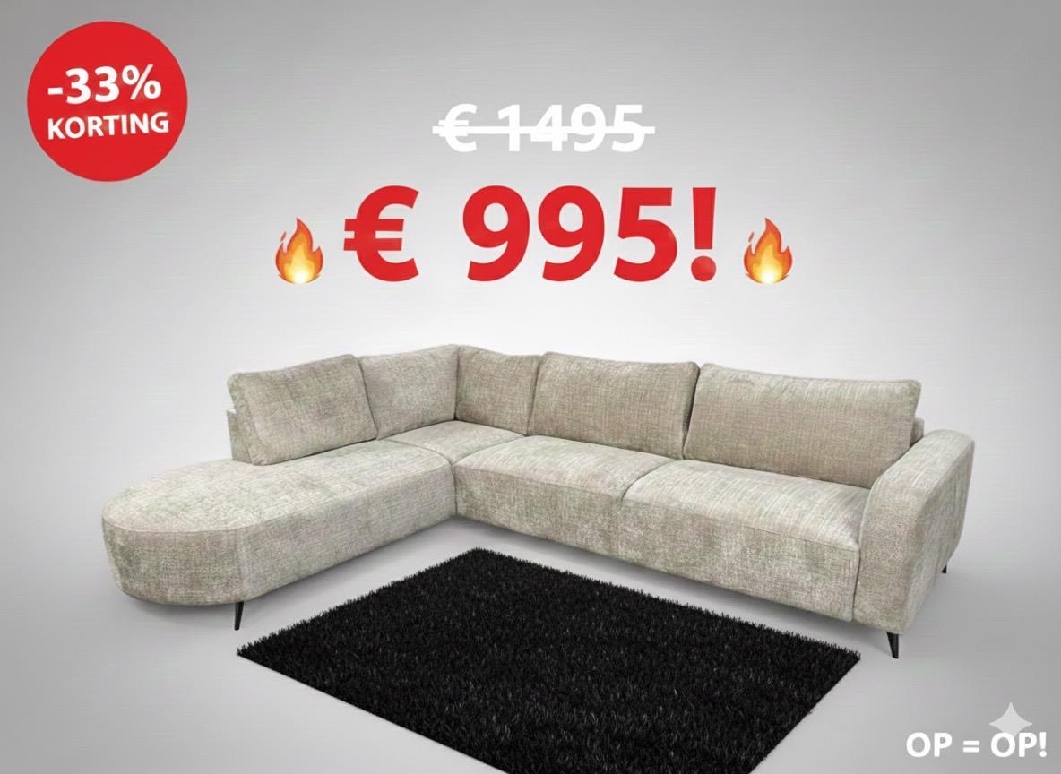 Mogelijk in vele kleuren en opstellingen is de bank Arnhem een bank waar zijn gunstige prijs. Afmeting: 225×285 cm of in spiegelbeeld. Made in Europa.