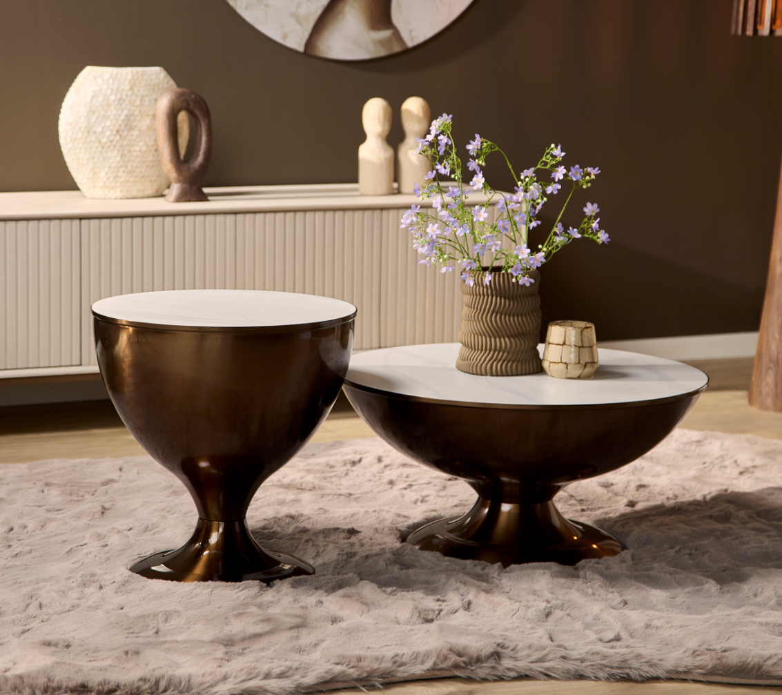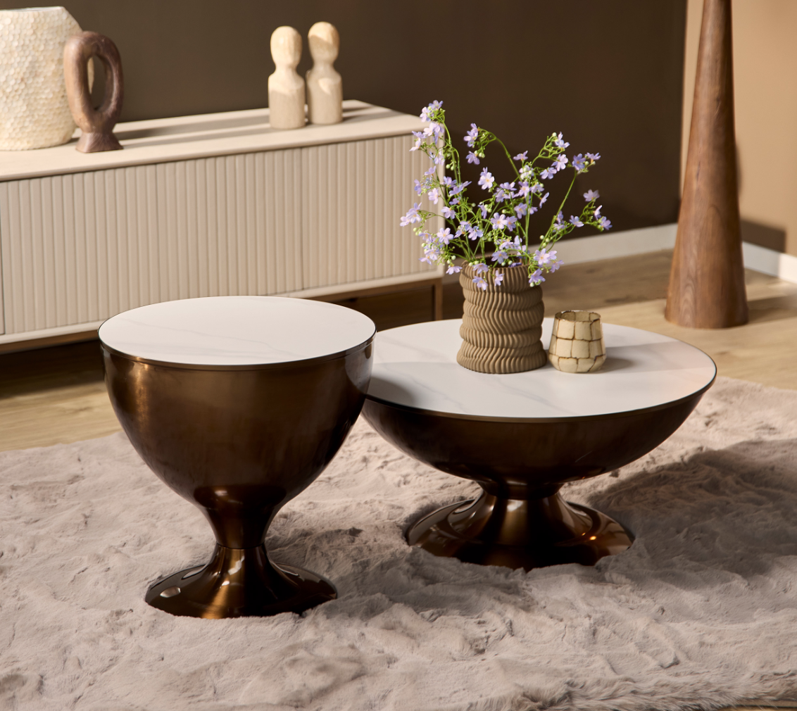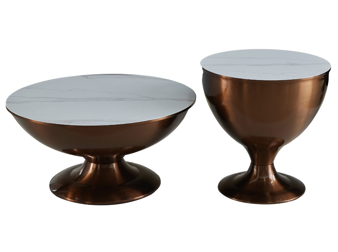 De Salontafel Ava is een set van 2 tafels die perfect passen in elke moderne woonkamer. Het marmeren tafelblad in combinatie met het gouden metalen onderstel maakt van deze salontafel een echte eyecatcher.