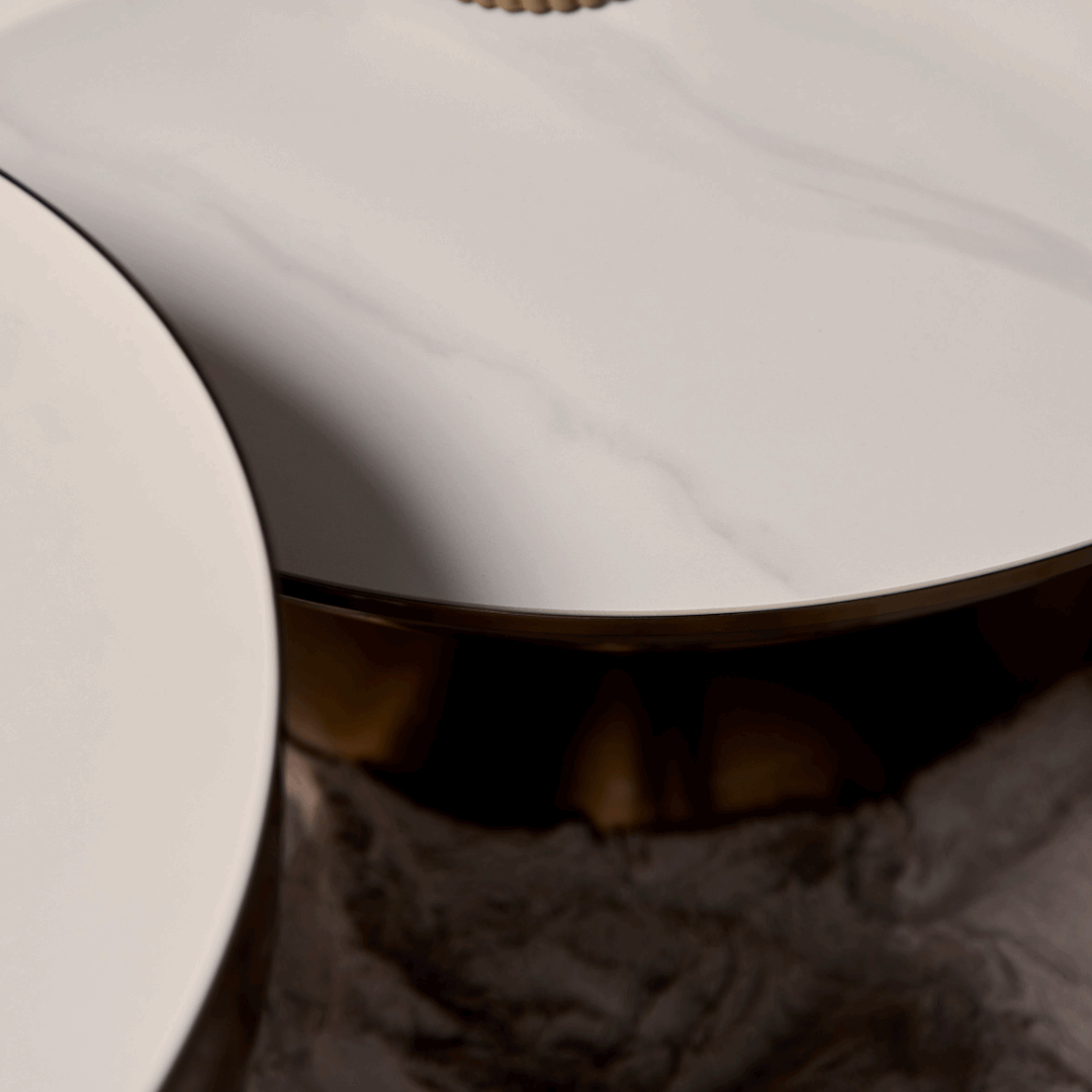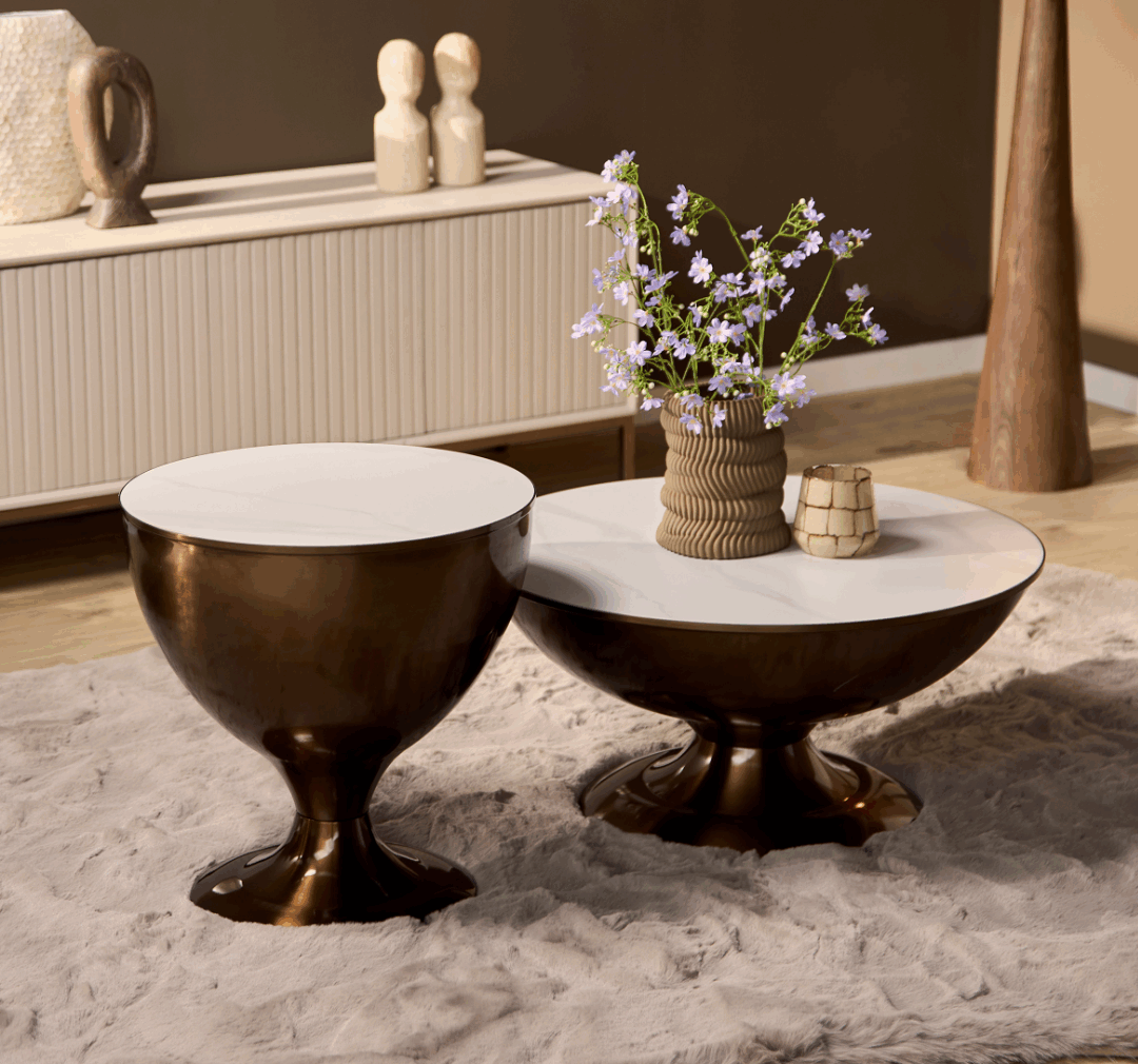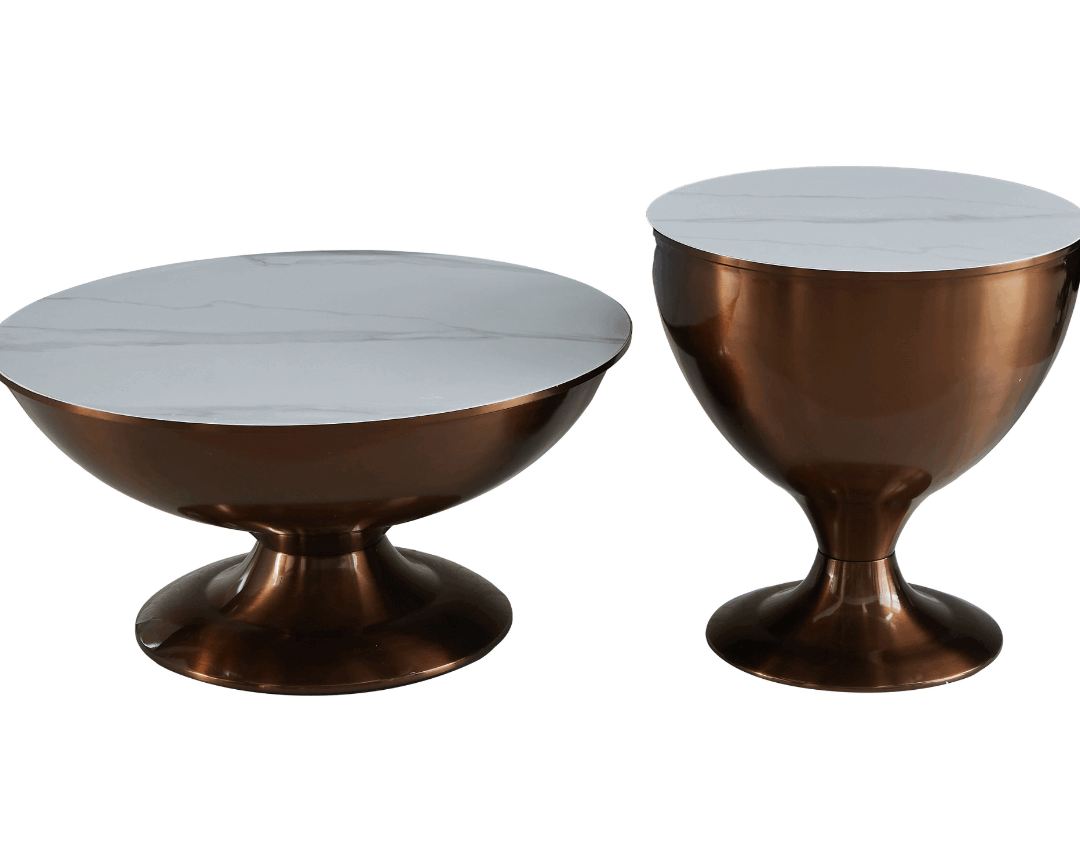 De Salontafel Ava is een set van 2 tafels die perfect passen in elke moderne woonkamer. Het marmeren tafelblad in combinatie met het gouden metalen onderstel maakt van deze salontafel een echte eyecatcher.