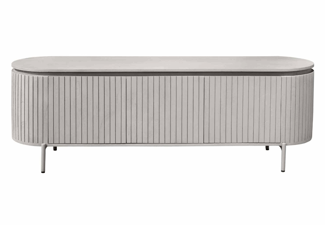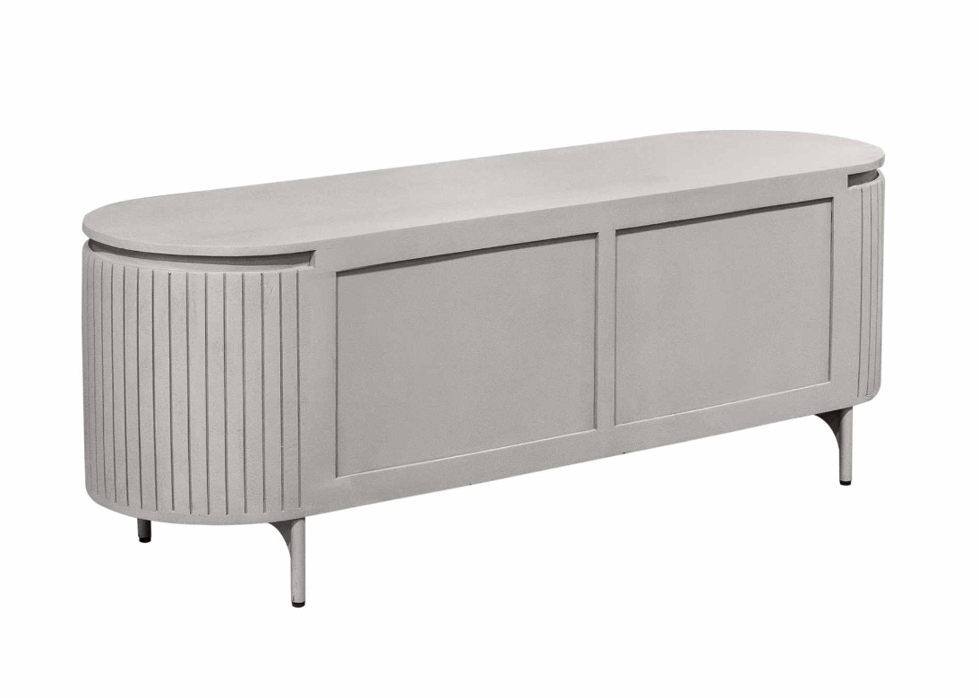Tv meubel Solana is een stijlvol en tijdloos item, gemaakt van mangohout in een taupe finish.